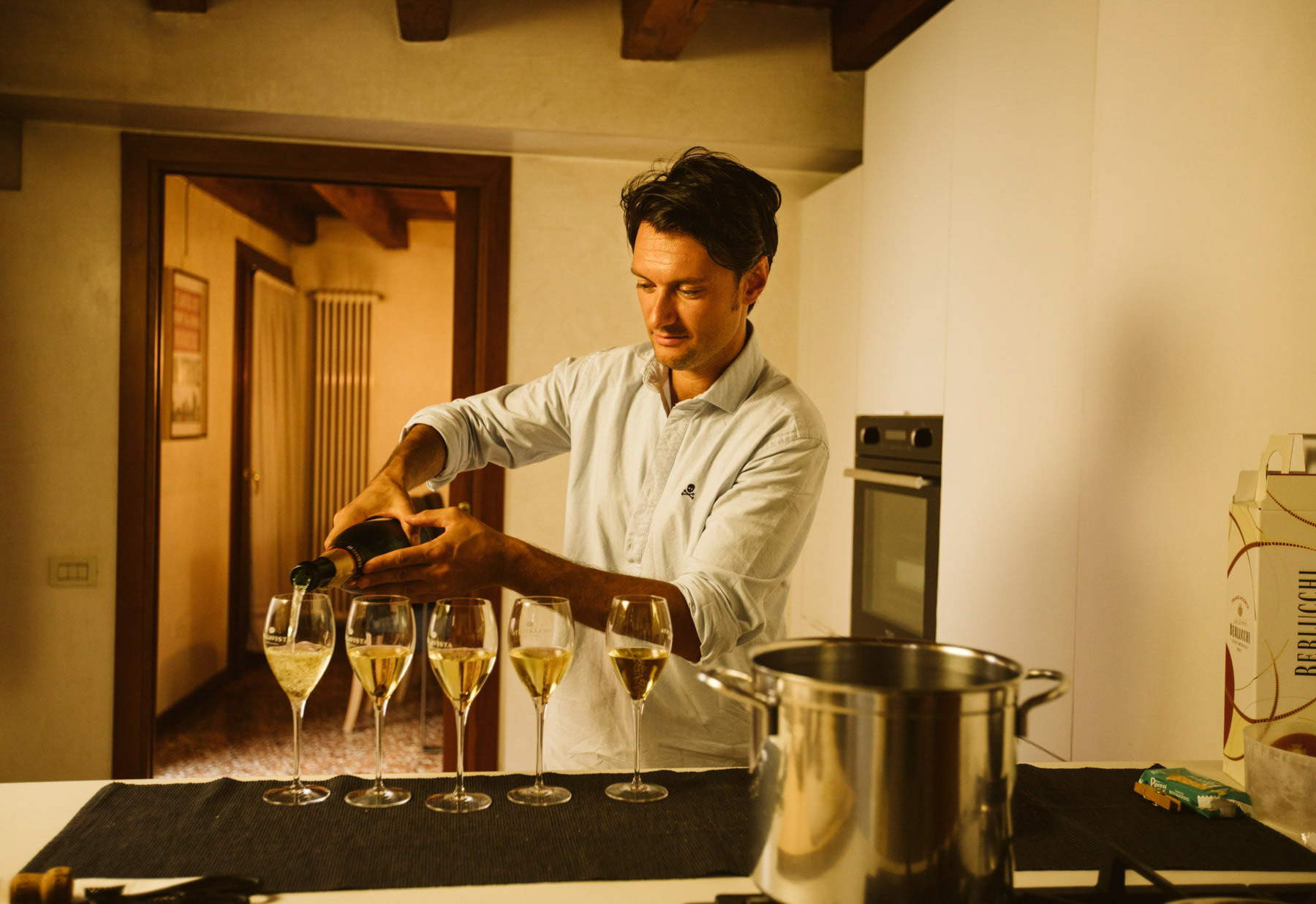 Kiedy po raz pierwszy dowiedziałam się, że będę miała przyjemność fotografować ślub Alessandry i Jacopo, malował nam się zupełnie inny scenariusz tej uroczystości, niż ten, który możecie obejrzeć w reportażu. Alessandra i Jacopo to para Włochów mieszkająca na co dzień w Poznaniu. Wymyślili sobie, że chcą mieć miejski ślub w samym centrum Poznania na Młyńskiej 12. Jednakże na kilka miesięcy przed ślubem, kiedy wydawało się, że już tak wiele tematów jest dopiętych, nagle nastąpił totalny zwrot akcji: przeprowadzka przyszłych Młodych z powrotem do słonecznej Italii. Przyznam szczerze, że nie ukrywałam radości z takiego obrotu sprawy; któż nie miałby ochoty fotografować ślubu w tak pięknym miejscu, jak północ Włoch nieopodal Wenecji. Lastminutowość tej decyzji wymusiła ogarnięcie wszystkiego na nowo, jednak nie było to zupełnie problemem dla Alessandry i Jacopo - dzięki właściwemu Włochom chillowi, po prostu nie mogło się to nie udać. W lipcu wyruszyłam zatem do słonecznej Italii, a konkretnie do miasta rodzinnego Alessandry i Jacopo, czyli Vicenzy. W domu Alessandry powitała mnie jej przesympatyczna Mamma, która ugościła mnie włoskimi ciasteczkami ślubnymi o nazwie aka. Następnie ruszyłam do Jacopo, gdzie panował już nieco weselny klimat z nieodłącznym prosecco wspomagającym uśmierzenie przedślubnych napięć. W kościele okazało się, że mury kościoła są skrajnie nagrzane włoskim słońcem, na pocieszenie dostałam od księdza wachlarz zresztą jak reszta gości. Atmosfera wśród gości była wyjątkowa i to rekompensowało wszelkie temperaturowe bolączki. Po mszy udaliśmy się do Ristorante dal Beppino gdzie fiesta nabrała włoskiego tempa. Najpierw aperitif i długie rozmowy, później włoskie specjały, które okazały się kulinarnym mistrzostwem świata. Włoska przygoda jednak nie skończyła się na weselu, dzień później spotkałam się ponownie z Alessandrą oraz Jacopo na plenerze szlakami ich młodości.