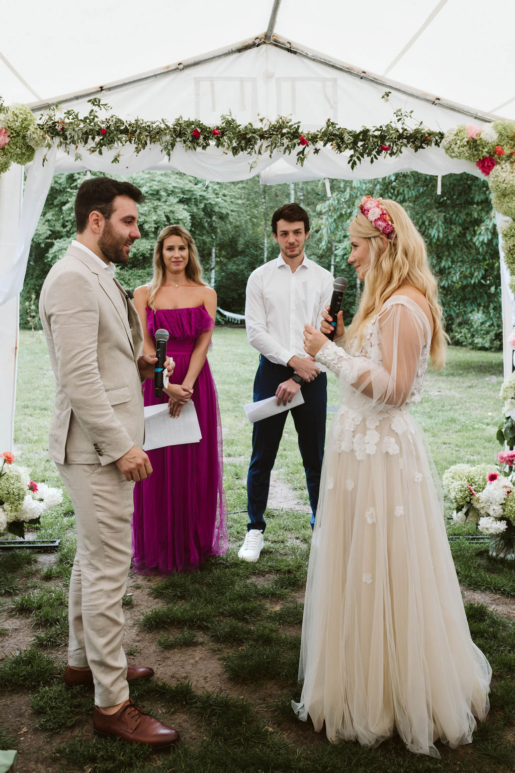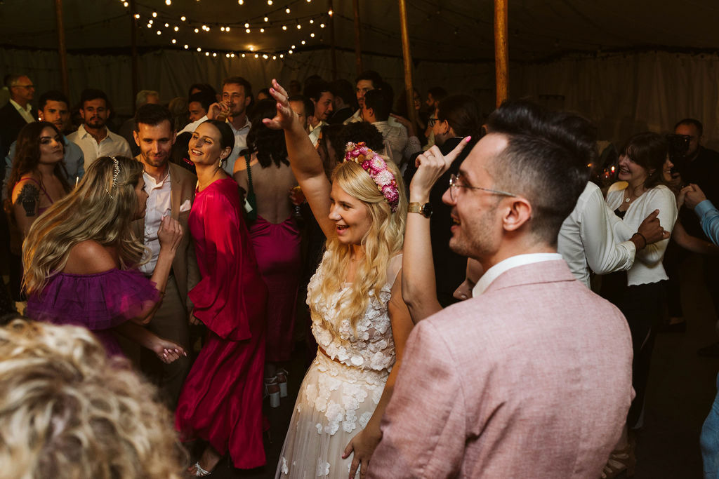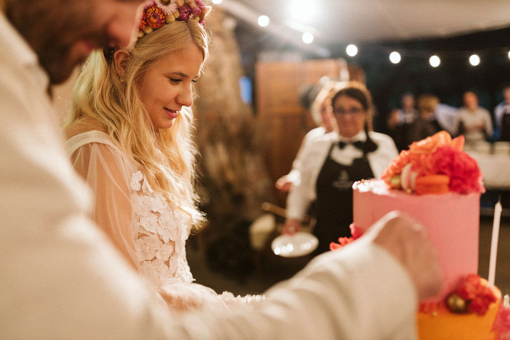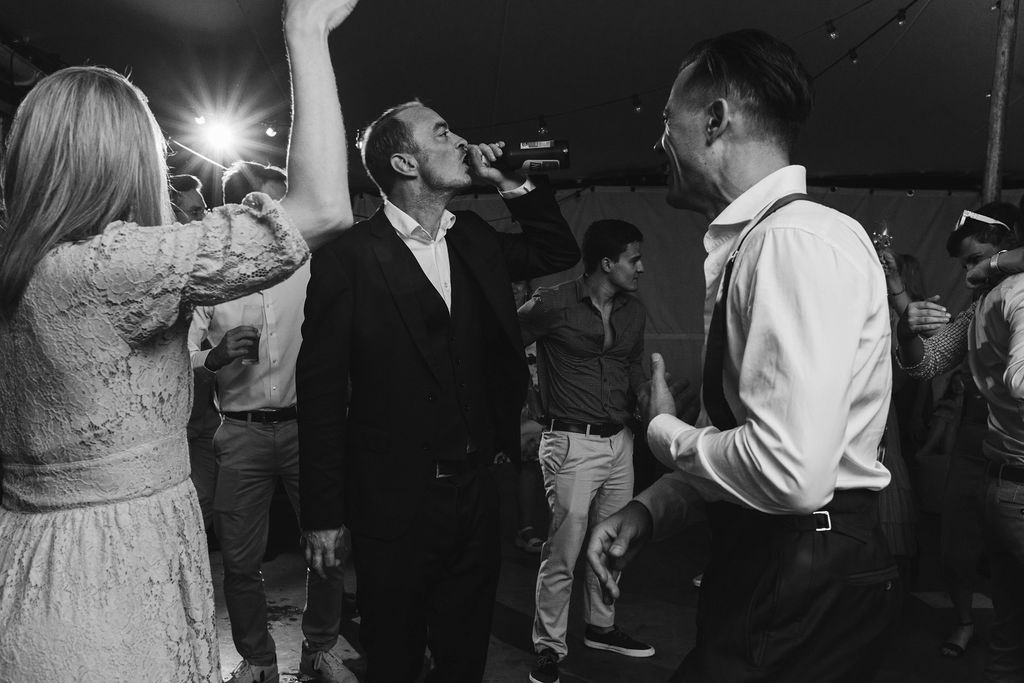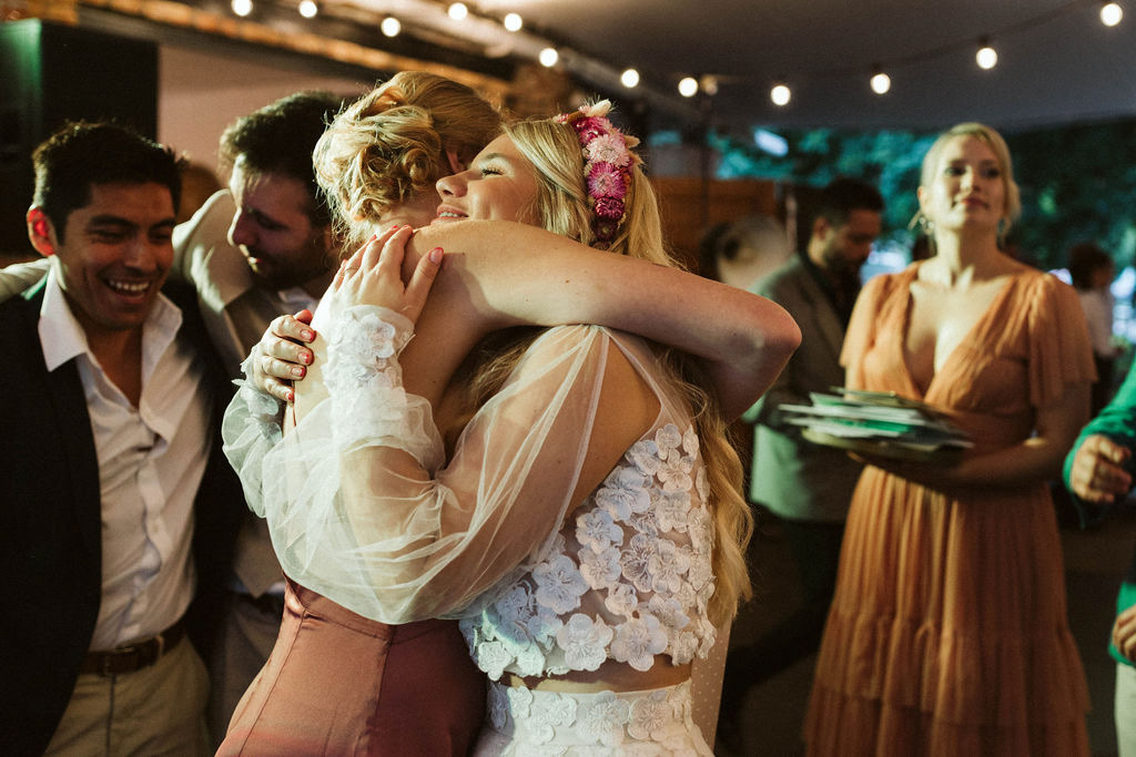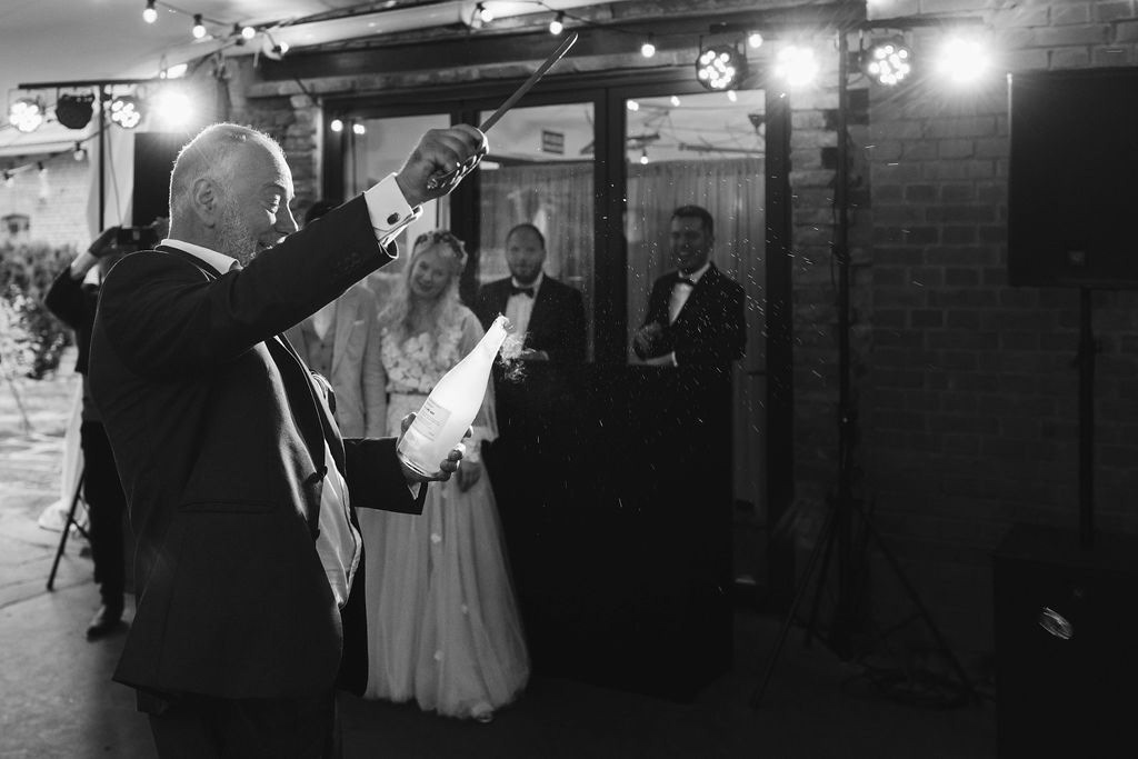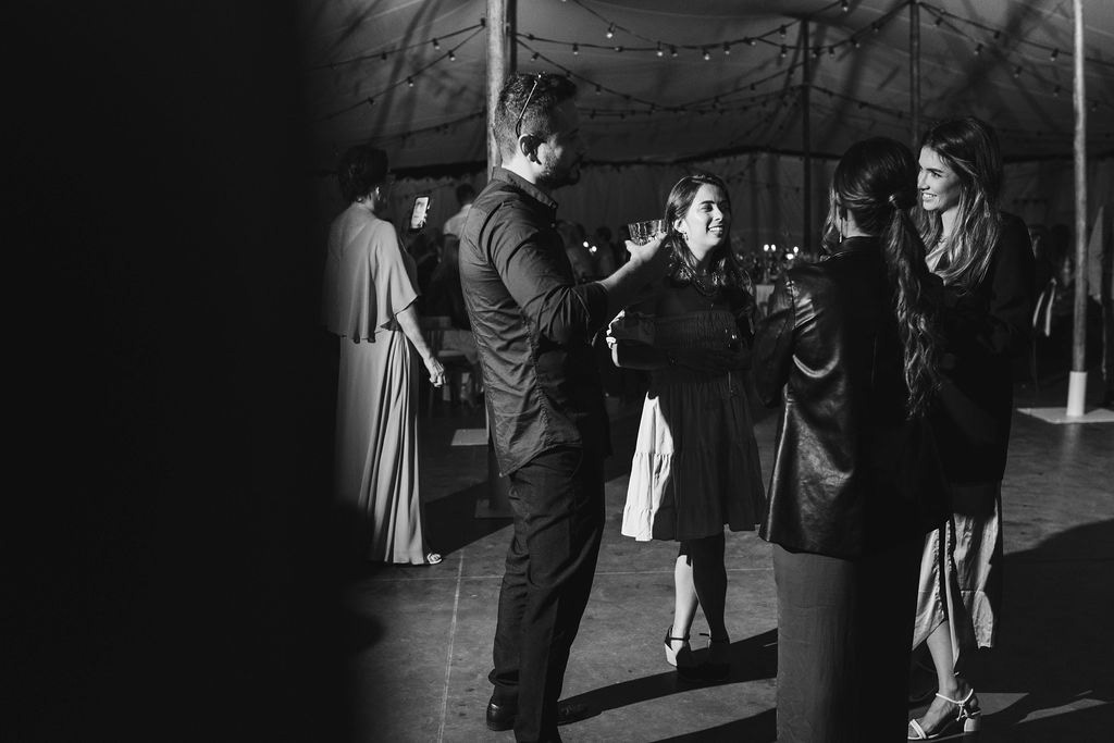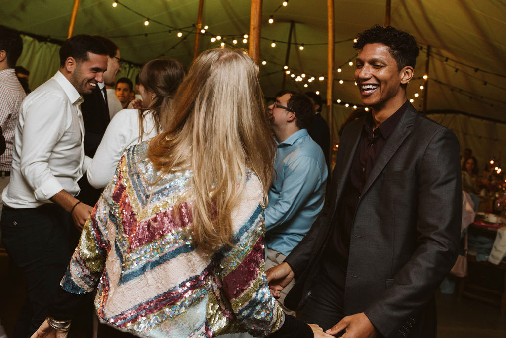 Z Anią i Tiago poznaliśmy się na targach ślubnych i już od pierwszych chwil rozmawiało mi się z nimi bardzo miło i swobodnie. Klimaty brazylijskie są mi bliskie, bo kiedyś miałam ogromne szczęście pomieszkać w tym kraju, więc gdy tylko Ania&Tiago napisali do mnie, że wybrali mnie na swoją fotografkę ślubną od razu ucieszyłam się, że Brazylia znowu na chwilę pojawi się w moim życiu. Ale nie o mnie, opowiem Wam o pięknym ślubie i weselu Ani i Tiago, który odbywał się w Przyborowo 11. Najpierw przygotowania, kto mnie zna wie, że bardzo lubię tę część dnia podczas których szukam reportażowych smaczków. Podczas przygotowań u Ani i Tiago pełen luz… nikt się nie spieszy, kolega gra na gitarze w tle, ktoś podjada pizzę, w kuchni brazylijscy przyjaciele przygotowują słodkie przysmaki. Później zaczyna padać deszcz, ale kto by się tym przejmował – Ania jako świetnie zorganizowana osoba przewidziała taki scenariusz i pojawiają się dla gości fajne, przezroczyste parasole. Ślub humanistyczny Ani i Tiago – po prostu bajka, odczytanie pięknych wyznań miłości w towarzystwie przyjaciół jako celebrantów ślubu, mnóstwo śmiechu, wzruszeń, a nawet długie chwile wypełnione łzami szczęścia. A potem wspaniałe wesele przeplecione tradycjami polskimi, brazylijskimi, hiszpańskimi. Świetny moment gdy Tata Ani otwiera pet-nat wyprodukowany w winnicy Zodiak, która należy do rodziny Ani. Owacje dla Taty były na stojąco, bo co tu ukrywać takie fajne sceny to widzi się raczej w filmach, także tym bardziej chapeau bas dla Taty Ani. Potem super grupówki z rodziną i znajomymi na kanapie, która jakimś sposobem trafiła na skraj lasu. Za chwilę w oddali słychać już rozbrzmiewanie pierwszych dźwięków dancefloor-u, więc goście ruszają na parkiet, gdzie zaczyna dziać się taneczny „karnawał”. Zresztą sami zobaczcie, bo takie taneczne pląsy to lepiej zobaczyć niż opisywać.