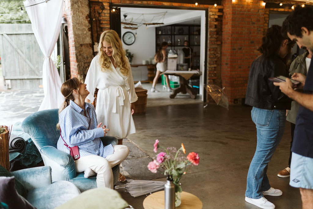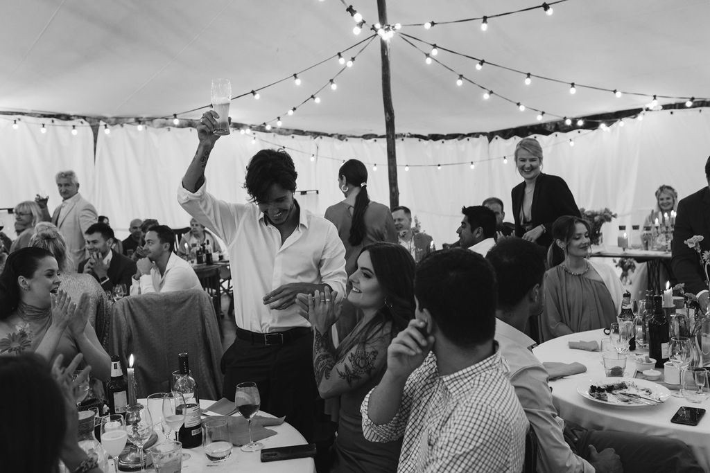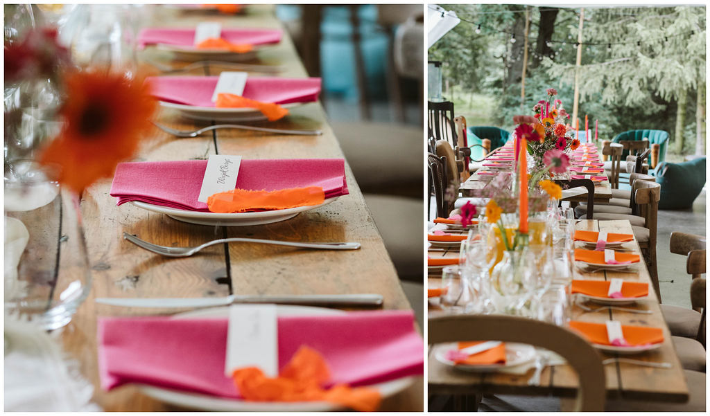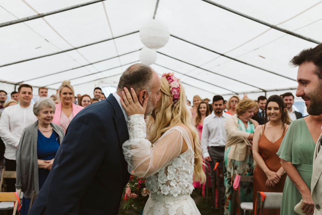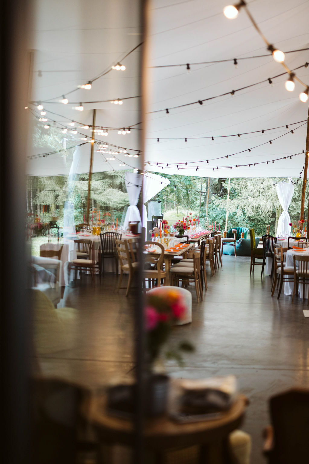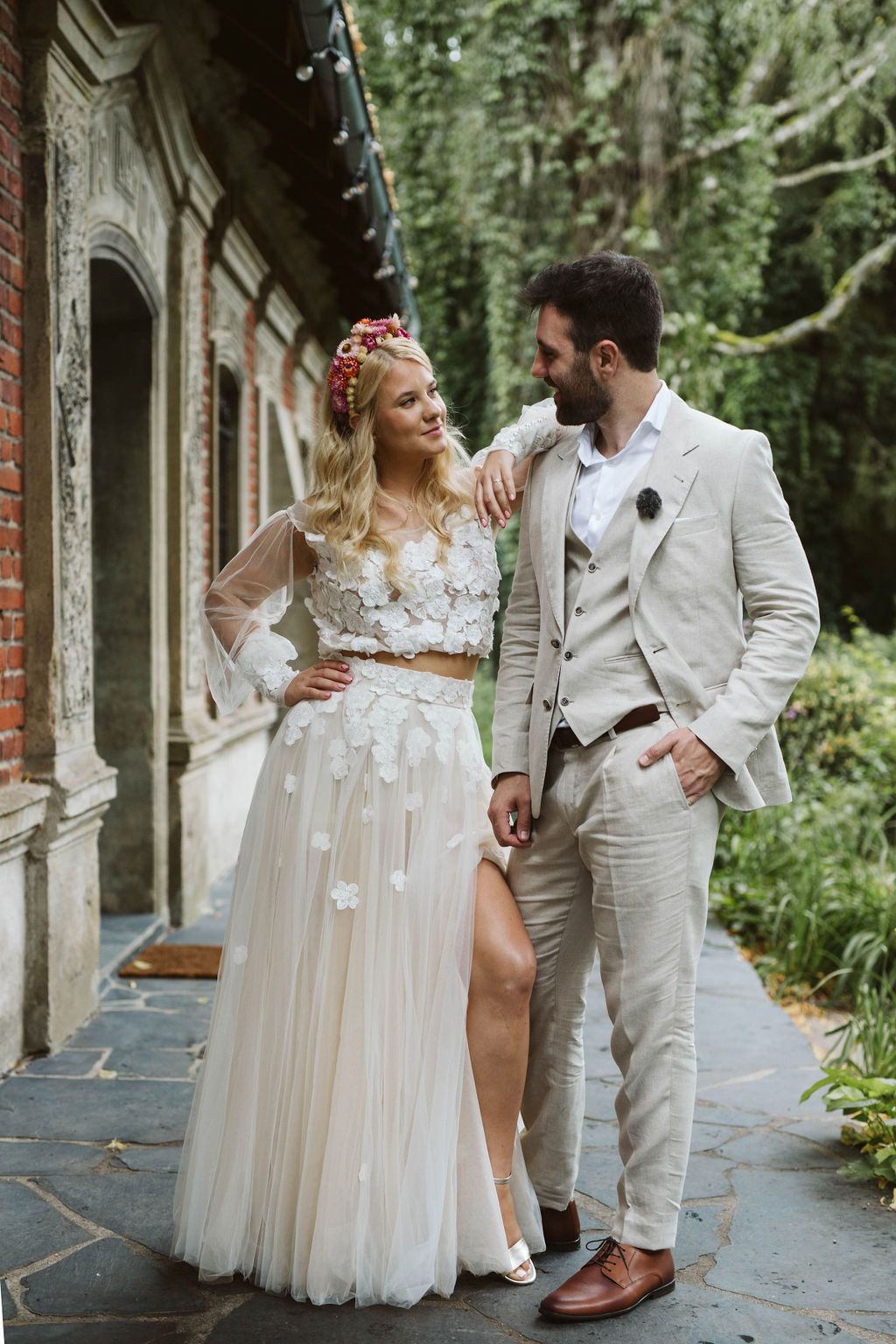 Z Anią i Tiago poznaliśmy się na targach ślubnych i już od pierwszych chwil rozmawiało mi się z nimi bardzo miło i swobodnie. Klimaty brazylijskie są mi bliskie, bo kiedyś miałam ogromne szczęście pomieszkać w tym kraju, więc gdy tylko Ania&Tiago napisali do mnie, że wybrali mnie na swoją fotografkę ślubną od razu ucieszyłam się, że Brazylia znowu na chwilę pojawi się w moim życiu. Ale nie o mnie, opowiem Wam o pięknym ślubie i weselu Ani i Tiago, który odbywał się w Przyborowo 11. Najpierw przygotowania, kto mnie zna wie, że bardzo lubię tę część dnia podczas których szukam reportażowych smaczków. Podczas przygotowań u Ani i Tiago pełen luz… nikt się nie spieszy, kolega gra na gitarze w tle, ktoś podjada pizzę, w kuchni brazylijscy przyjaciele przygotowują słodkie przysmaki. Później zaczyna padać deszcz, ale kto by się tym przejmował – Ania jako świetnie zorganizowana osoba przewidziała taki scenariusz i pojawiają się dla gości fajne, przezroczyste parasole. Ślub humanistyczny Ani i Tiago – po prostu bajka, odczytanie pięknych wyznań miłości w towarzystwie przyjaciół jako celebrantów ślubu, mnóstwo śmiechu, wzruszeń, a nawet długie chwile wypełnione łzami szczęścia. A potem wspaniałe wesele przeplecione tradycjami polskimi, brazylijskimi, hiszpańskimi. Świetny moment gdy Tata Ani otwiera pet-nat wyprodukowany w winnicy Zodiak, która należy do rodziny Ani. Owacje dla Taty były na stojąco, bo co tu ukrywać takie fajne sceny to widzi się raczej w filmach, także tym bardziej chapeau bas dla Taty Ani. Potem super grupówki z rodziną i znajomymi na kanapie, która jakimś sposobem trafiła na skraj lasu. Za chwilę w oddali słychać już rozbrzmiewanie pierwszych dźwięków dancefloor-u, więc goście ruszają na parkiet, gdzie zaczyna dziać się taneczny „karnawał”. Zresztą sami zobaczcie, bo takie taneczne pląsy to lepiej zobaczyć niż opisywać.