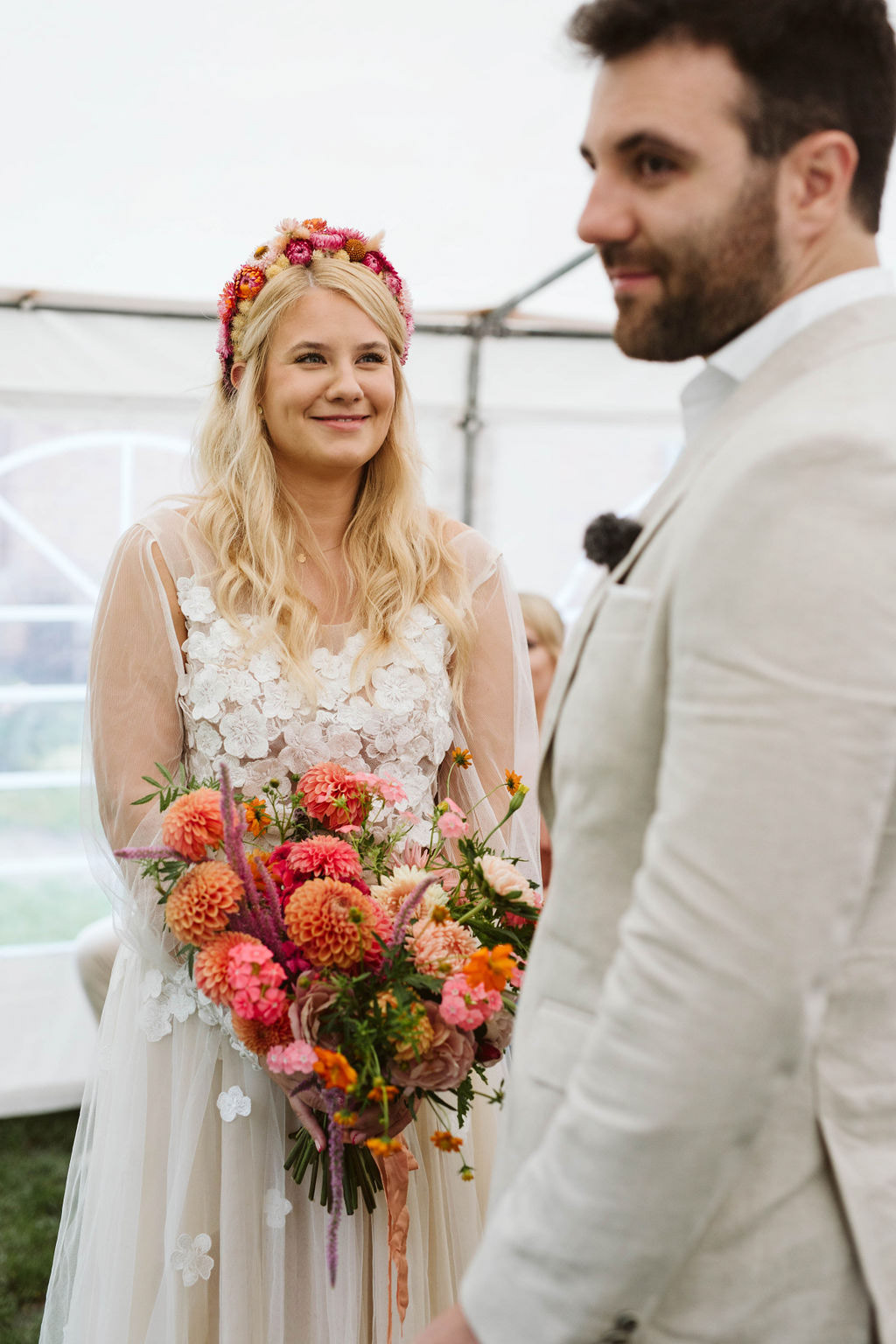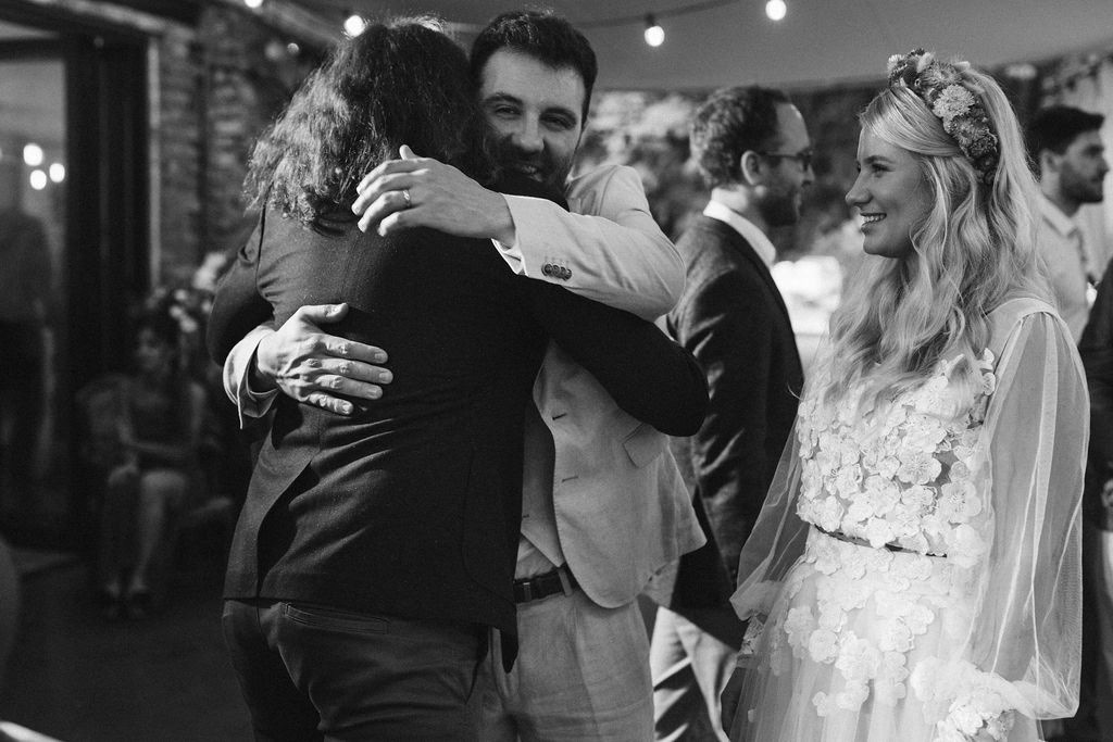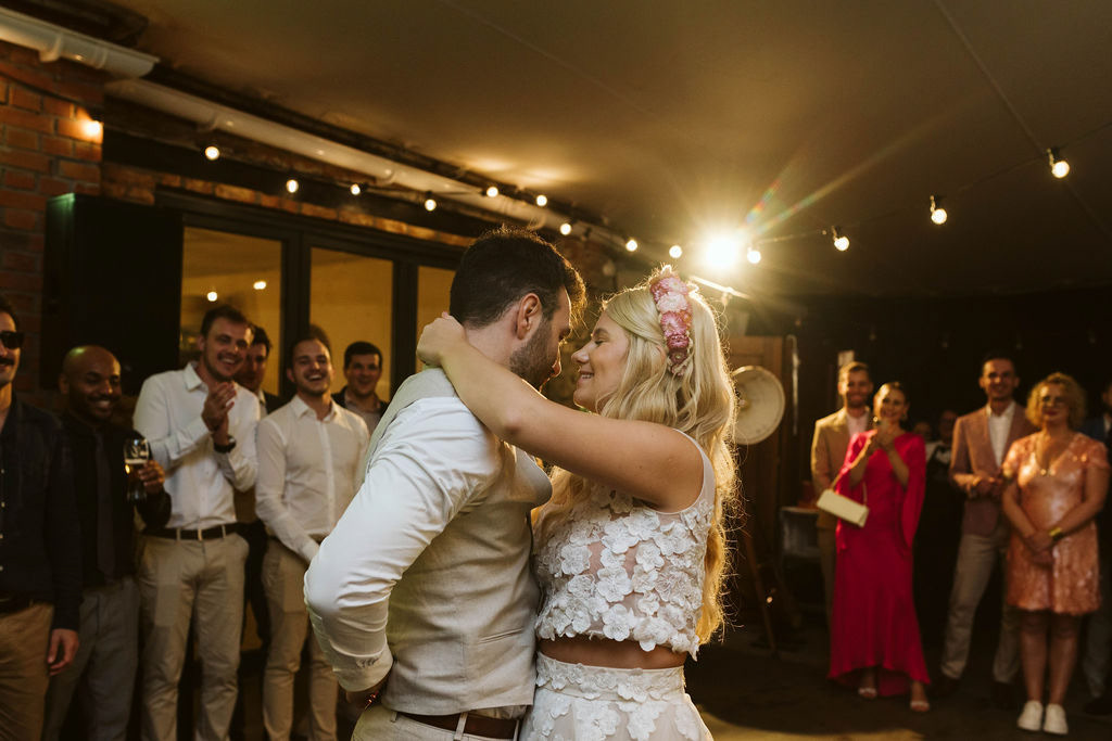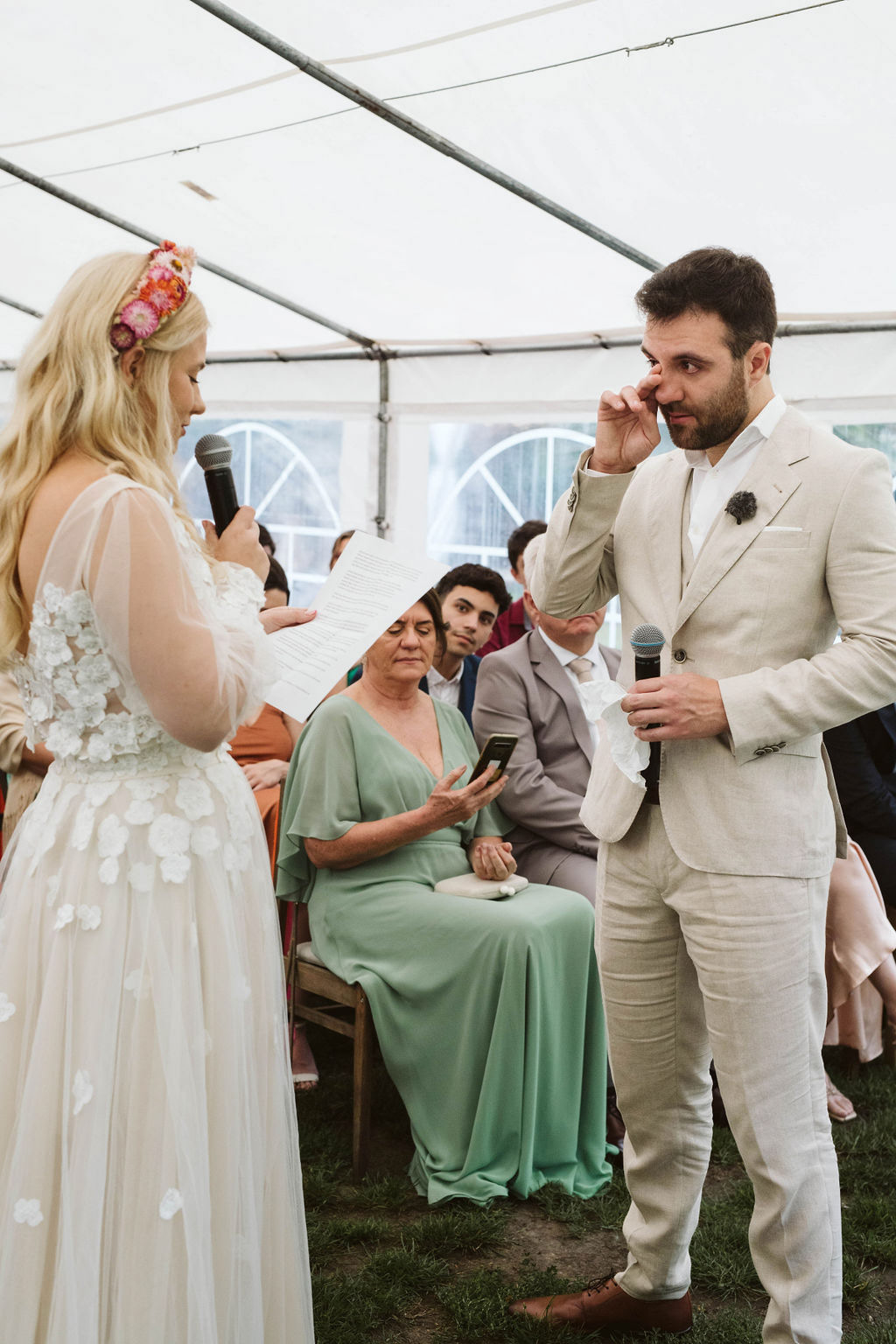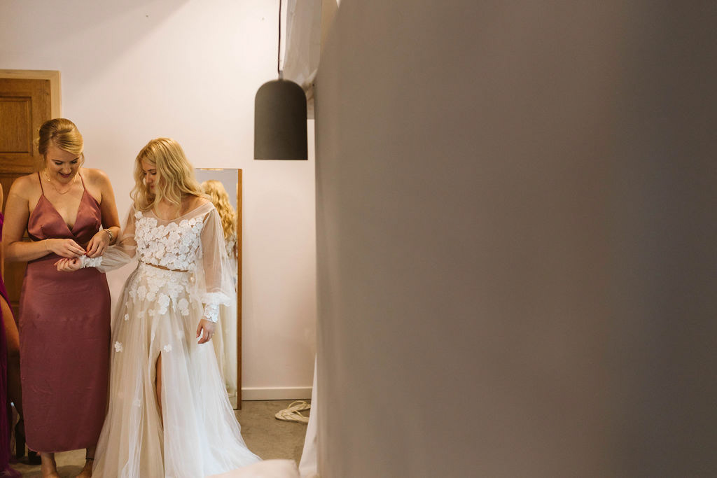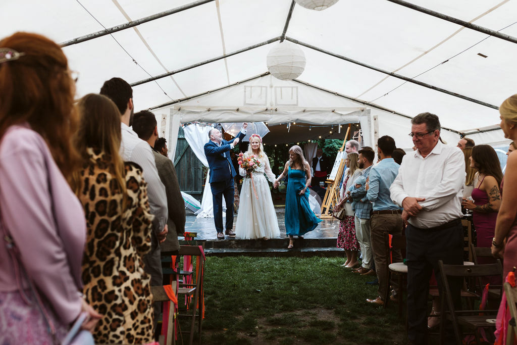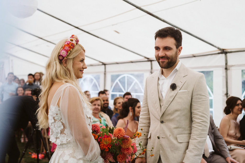 Z Anią i Tiago poznaliśmy się na targach ślubnych i już od pierwszych chwil rozmawiało mi się z nimi bardzo miło i swobodnie. Klimaty brazylijskie są mi bliskie, bo kiedyś miałam ogromne szczęście pomieszkać w tym kraju, więc gdy tylko Ania&Tiago napisali do mnie, że wybrali mnie na swoją fotografkę ślubną od razu ucieszyłam się, że Brazylia znowu na chwilę pojawi się w moim życiu. Ale nie o mnie, opowiem Wam o pięknym ślubie i weselu Ani i Tiago, który odbywał się w Przyborowo 11. Najpierw przygotowania, kto mnie zna wie, że bardzo lubię tę część dnia podczas których szukam reportażowych smaczków. Podczas przygotowań u Ani i Tiago pełen luz… nikt się nie spieszy, kolega gra na gitarze w tle, ktoś podjada pizzę, w kuchni brazylijscy przyjaciele przygotowują słodkie przysmaki. Później zaczyna padać deszcz, ale kto by się tym przejmował – Ania jako świetnie zorganizowana osoba przewidziała taki scenariusz i pojawiają się dla gości fajne, przezroczyste parasole. Ślub humanistyczny Ani i Tiago – po prostu bajka, odczytanie pięknych wyznań miłości w towarzystwie przyjaciół jako celebrantów ślubu, mnóstwo śmiechu, wzruszeń, a nawet długie chwile wypełnione łzami szczęścia. A potem wspaniałe wesele przeplecione tradycjami polskimi, brazylijskimi, hiszpańskimi. Świetny moment gdy Tata Ani otwiera pet-nat wyprodukowany w winnicy Zodiak, która należy do rodziny Ani. Owacje dla Taty były na stojąco, bo co tu ukrywać takie fajne sceny to widzi się raczej w filmach, także tym bardziej chapeau bas dla Taty Ani. Potem super grupówki z rodziną i znajomymi na kanapie, która jakimś sposobem trafiła na skraj lasu. Za chwilę w oddali słychać już rozbrzmiewanie pierwszych dźwięków dancefloor-u, więc goście ruszają na parkiet, gdzie zaczyna dziać się taneczny „karnawał”. Zresztą sami zobaczcie, bo takie taneczne pląsy to lepiej zobaczyć niż opisywać.