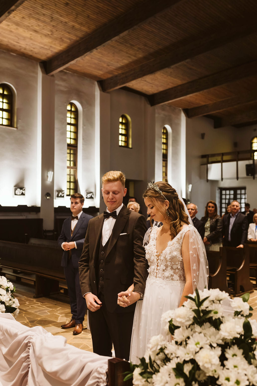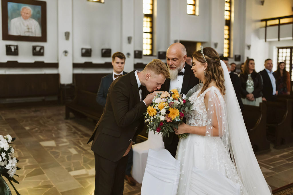 Ale wracając do naszych bohaterów reportażu Juli & Dawida i ich pięknego jesiennego ślubu. Można powiedzieć, że zdjęcia same tworzyły się, a to za sprawą świetnej, bezstresowej atmosfery, którą tworzyli Młodzi i ich rodziny. Nawet jak hipotetycznie mógł pojawić się stres, bo okazało się, że wyłączali prąd w kościele, gdzie miała odbyć się ceremonia, to nie zaburzyło to dobrego vibe-u całego dnia.