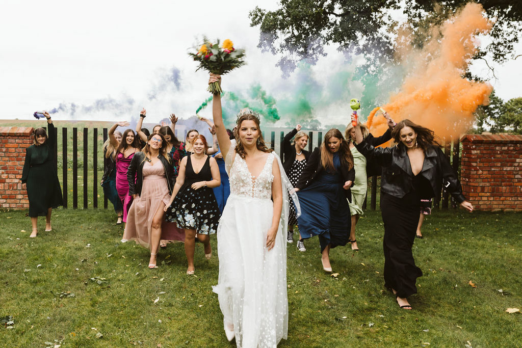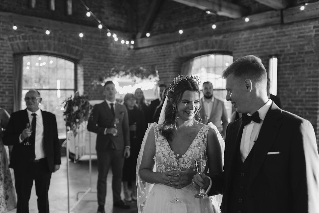 Po ślubie przenieśliśmy się do bardzo klimatycznego miejsca, które J&D wybrali na swoje wesele. Gdy dotarliśmy do Oklasków, pięknie odrestaurowanego budynku dawnej owczarni, zachwyciły mnie kolorowo-kwiatowe dekoracje J&D, jak również blask czerwonej cegły, stolarki i industrialnych okien samego miejsca.